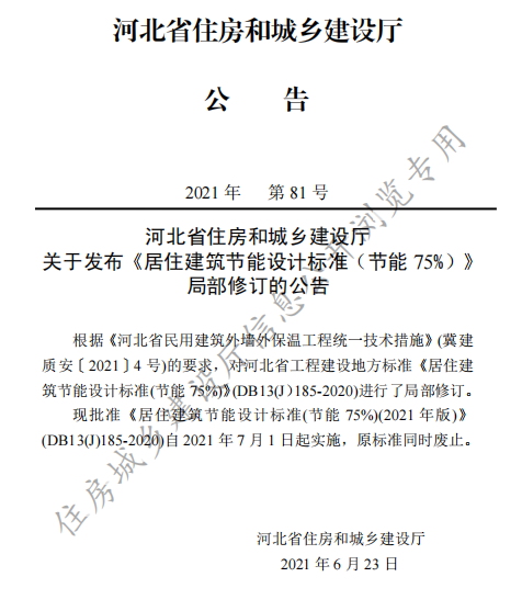 居住建筑節(jié)能設(shè)計(jì)標(biāo)準(zhǔn)(節(jié)能75%)(2021年版)DB13(J) 185-2020免費(fèi)下載清晰完整版