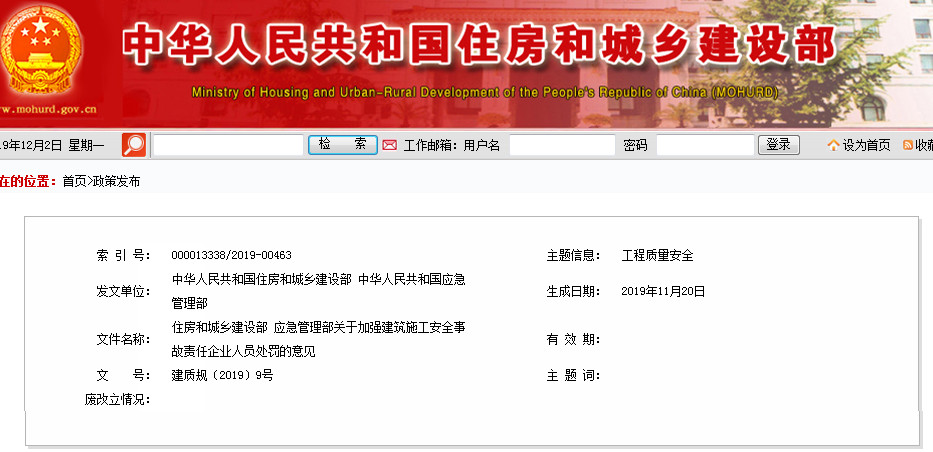 住房和城鄉建設部 應急管理部關于加強建筑施工安全事故責任企業人員處罰的意見