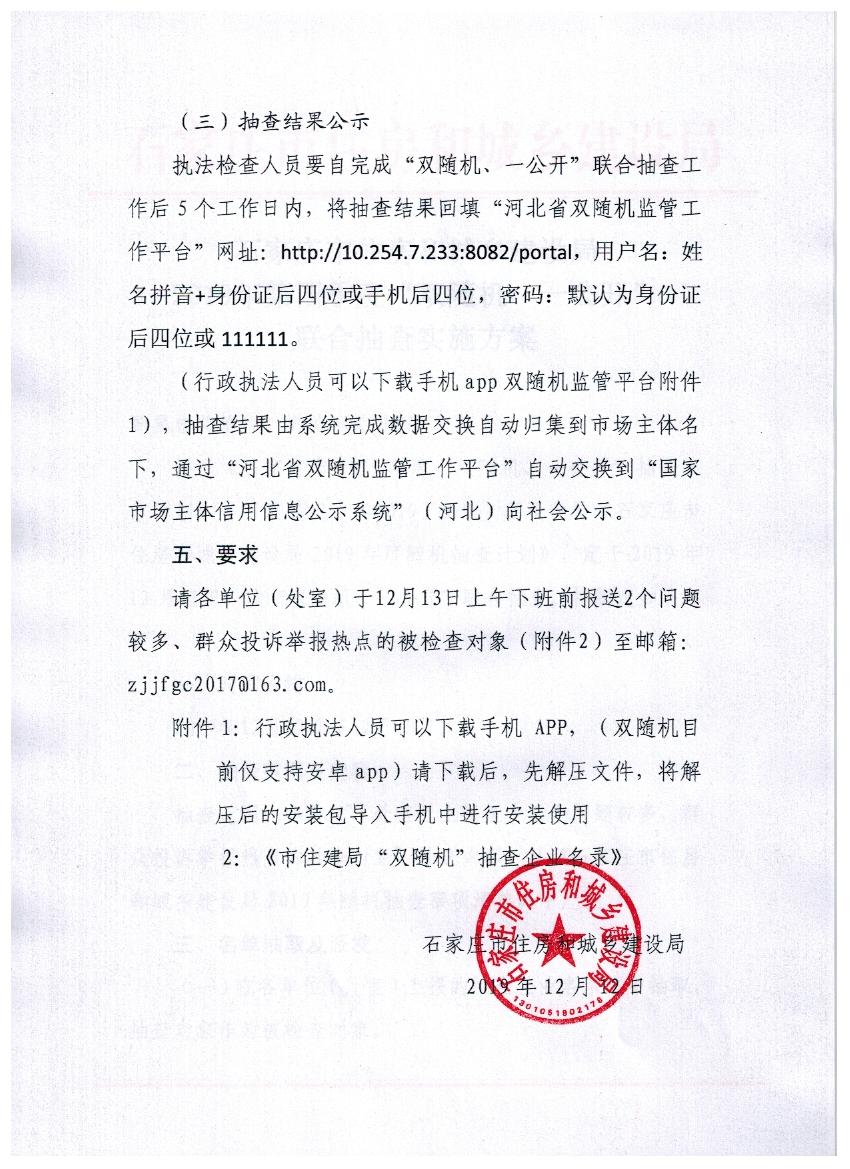 (行政執(zhí)法人員可以下載手機(jī)app雙隨機(jī)監(jiān)管平臺附件1),抽查結(jié)果由系統(tǒng)完成數(shù)據(jù)交換自動歸集到市場主體名下,通過“河北省雙隨機(jī)監(jiān)管工作平臺”自動交換到“國家市場主體信用信息公示系統(tǒng)”(河北)向社會公示